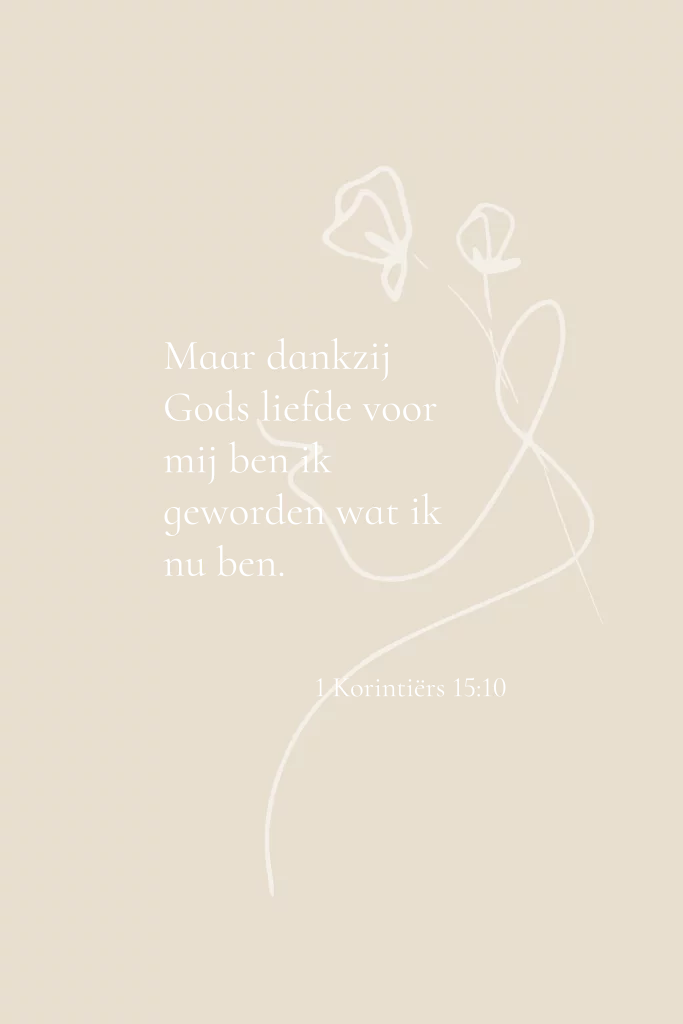 Poster met een illustratie van een vrouw en bloemen en een Bijbeltekst.