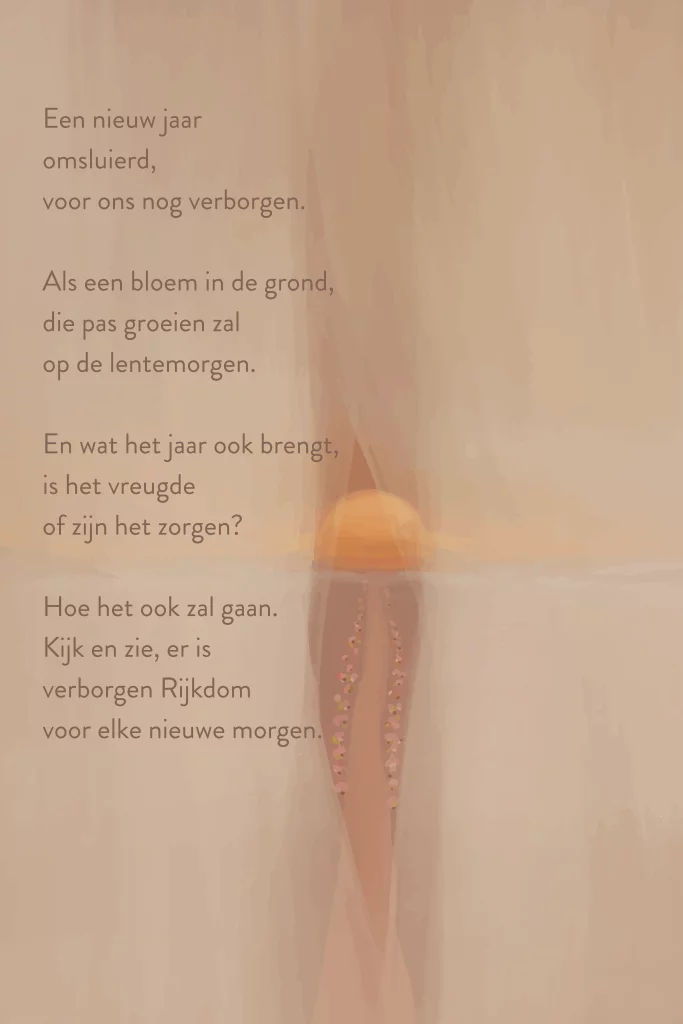 Een mooie poster met een gedicht voor een nieuw jaar. Mooi om te sturen voor een verjaardag bv. De afbeelding is een geschilderde tekening van een weg met de ondergaande zon en bloemen.
