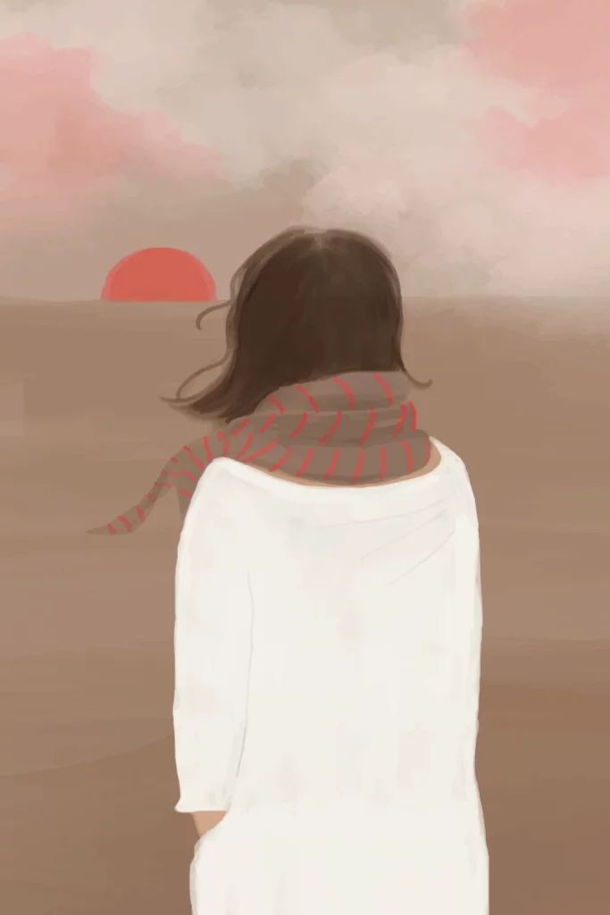 Een mooie geschilderde afbeelding van een vrouw en de zon.