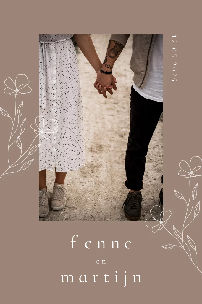 Trouwkaart foto bloemen goudfolie