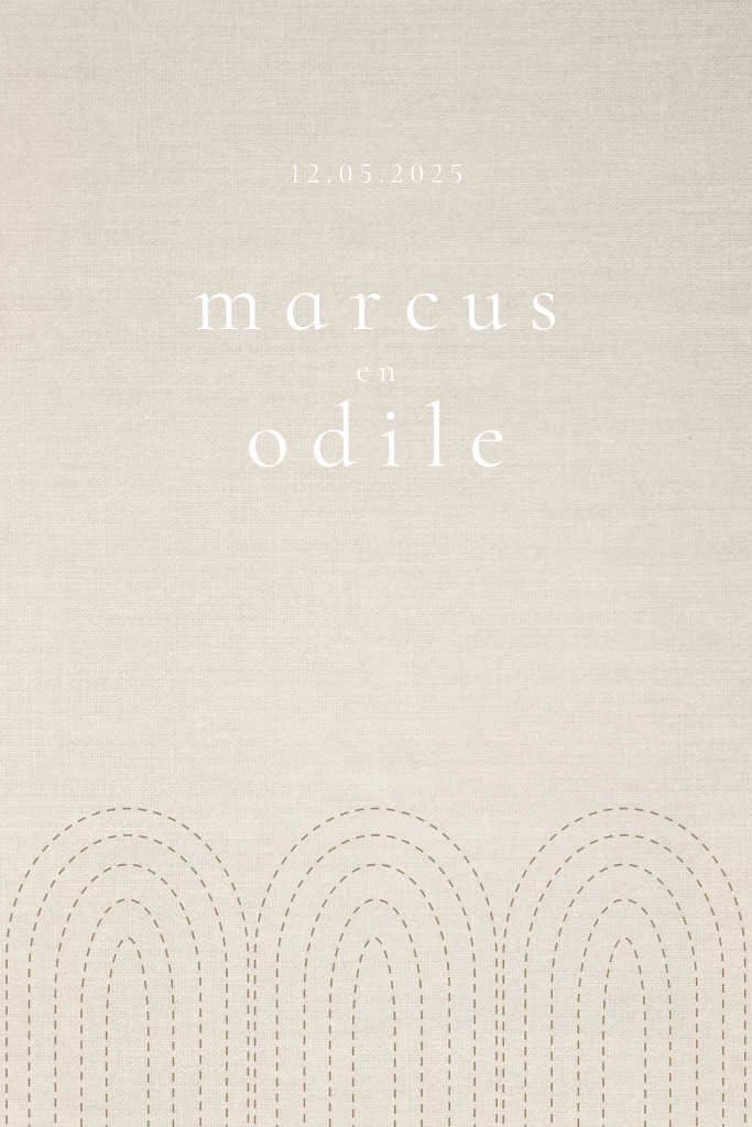 Een mooi kaartje met een linnenlook achtergrond en bogen. Kleur van de bogen en de alle teksten kunnen gewijzigd worden.