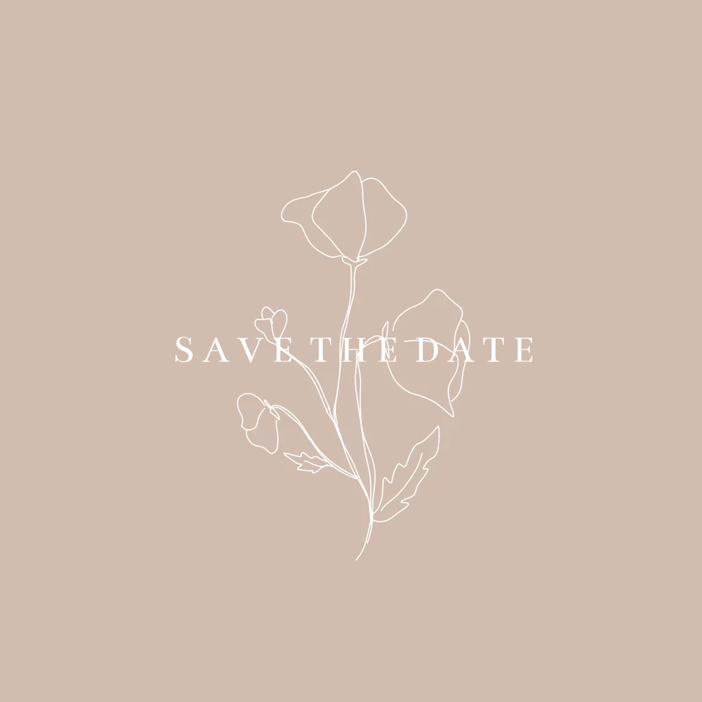 Een mooi eenvoudig save the date kaartje met een bloem en letters in goudfolie. Kleur van de achtergrond kan gewijzigd worden.
