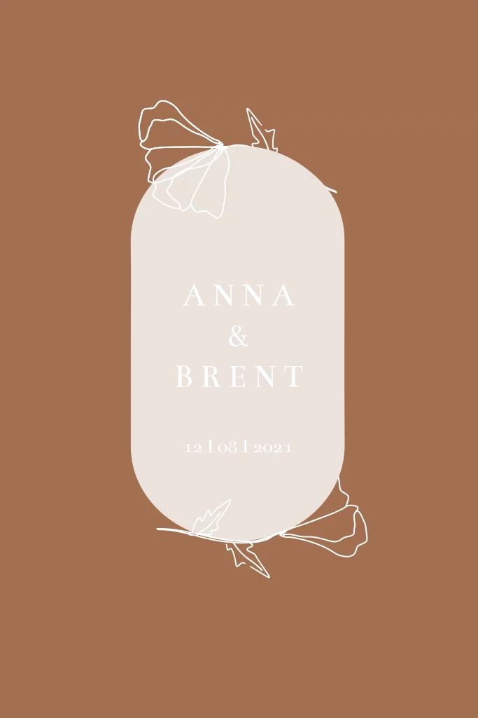 Een heel mooie trouwkaartje met de naam en de datum in goudfolie. In mooie warme kleuren.