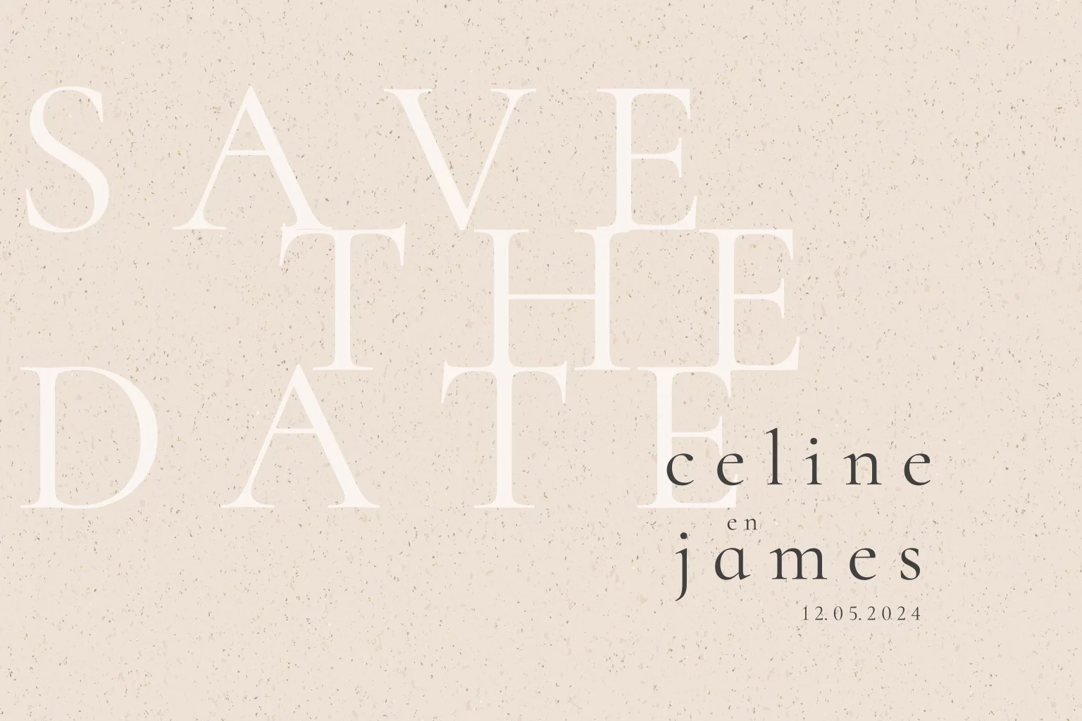 Een heel eenvoudige save the date kaart in minimalistische stijl met een structuur achtergrond.