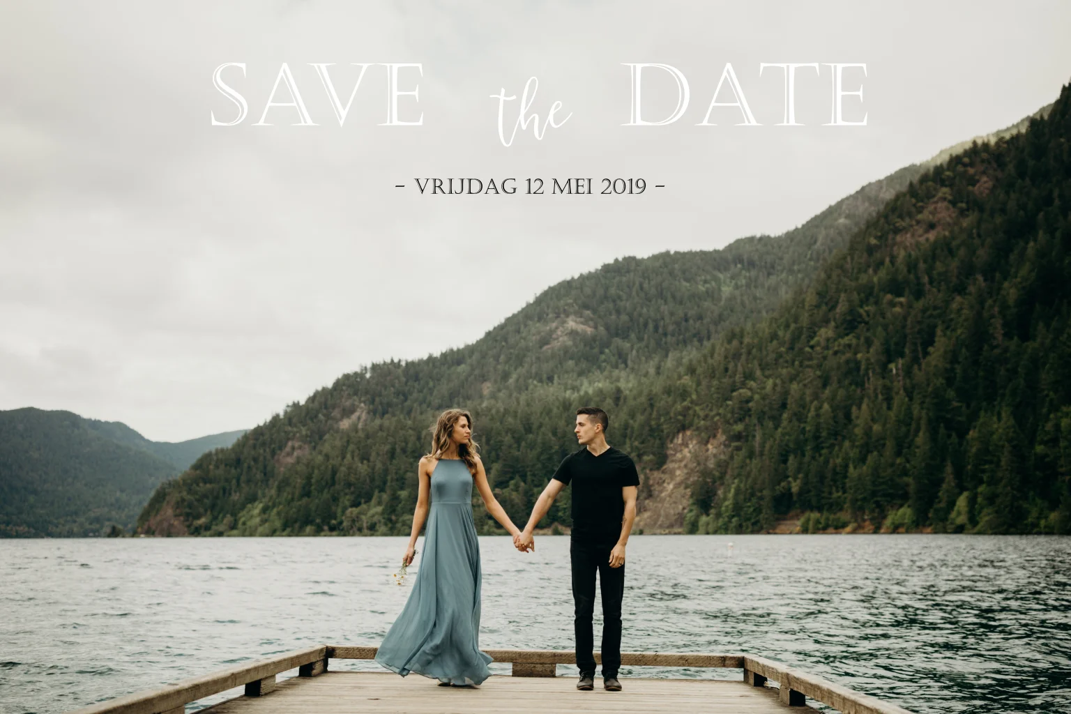 Een mooie eenvoudige save the date kaart met een eigen foto. Heel subtiel maar door de eenvoud heel mooi.