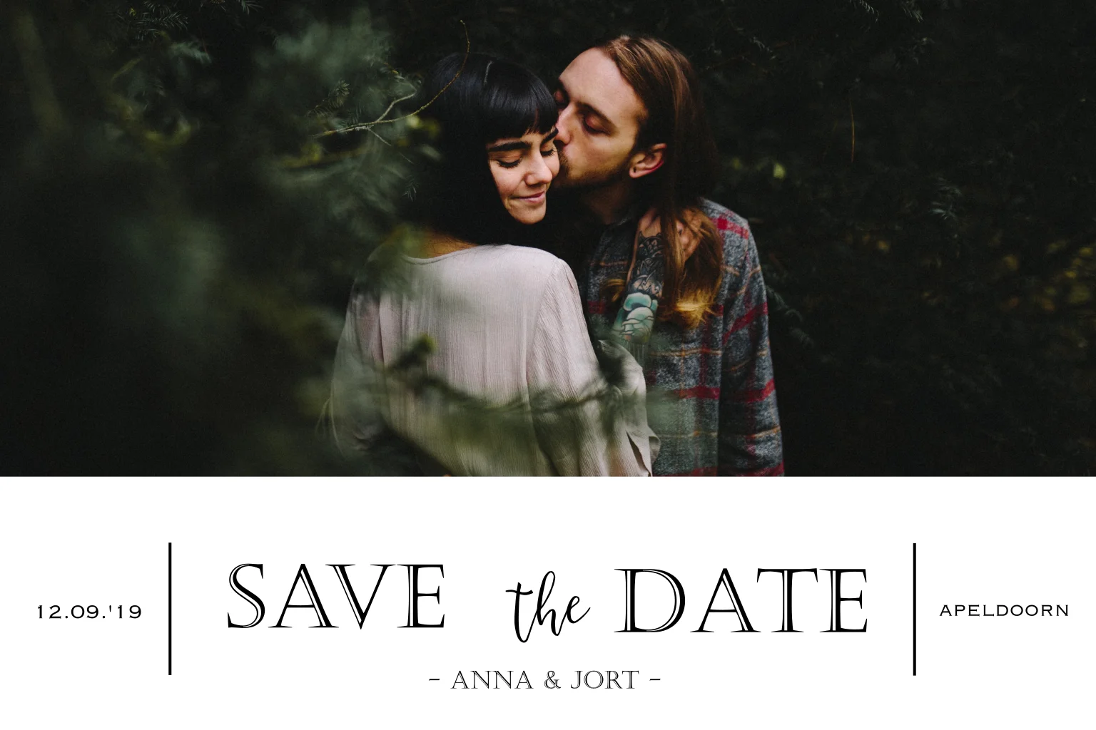 Een mooie eenvoudige save the date kaart met een eigen foto. Heel subtiel maar door de eenvoud heel mooi.