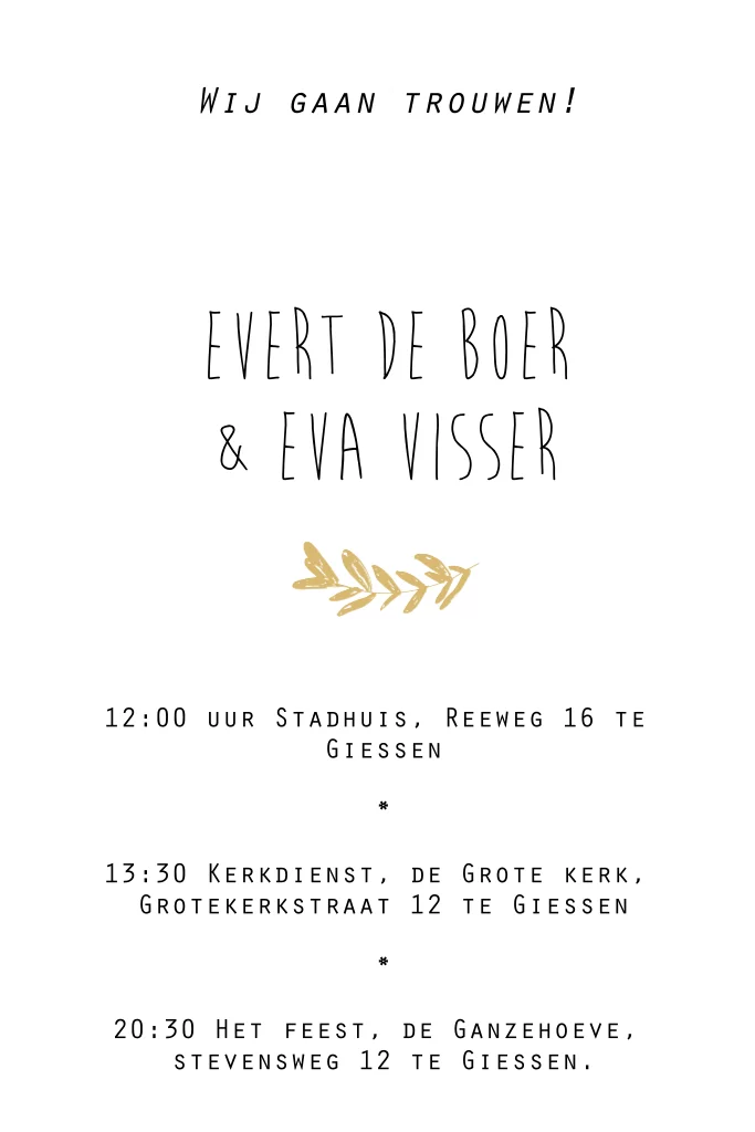 Een mooie lieve kaart, in de de kleuren oker en oud roze. Alle kleuren zijn aan te passen naar eigen wens. Gebruik het takje voor bv heel je kaartenlijn, zodat je trouwhuisstijl één lijn is.