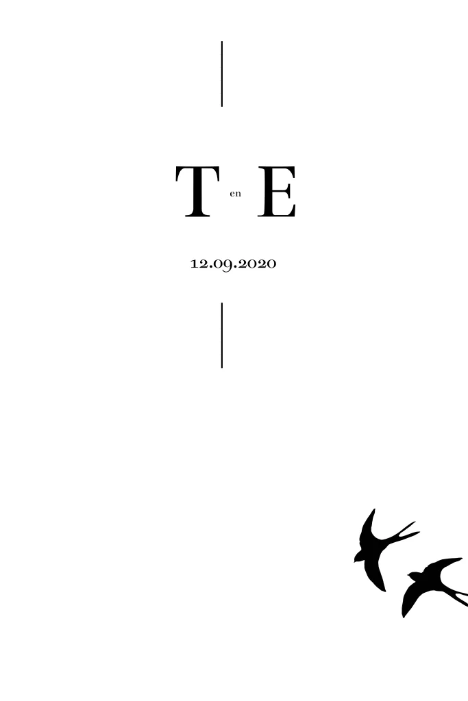 Een mooie eenvoudige en strakke trouwkaart met vogels ( zwaluwen ) Heel subtiel maar door de eenvoud heel mooi.