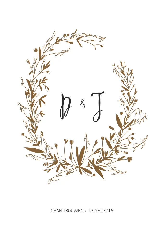 Een mooie chique trouwhuisstijl, met veel getekende bloemen en blaadjes. Deze trouwhuisstijl kan je gebruiken voor heel je kaarten lijn. Wil je iets anders of zijn er vragen mail ons gerust, dan helpen wij je graag!