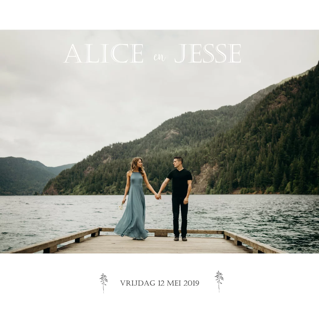 Een mooie eenvoudige trouwkaart met een eigen foto. Heel subtiel maar door de eenvoud heel mooi. Het is echt een mooi kaart te gebruiken voor een bruiloft in de natuur.