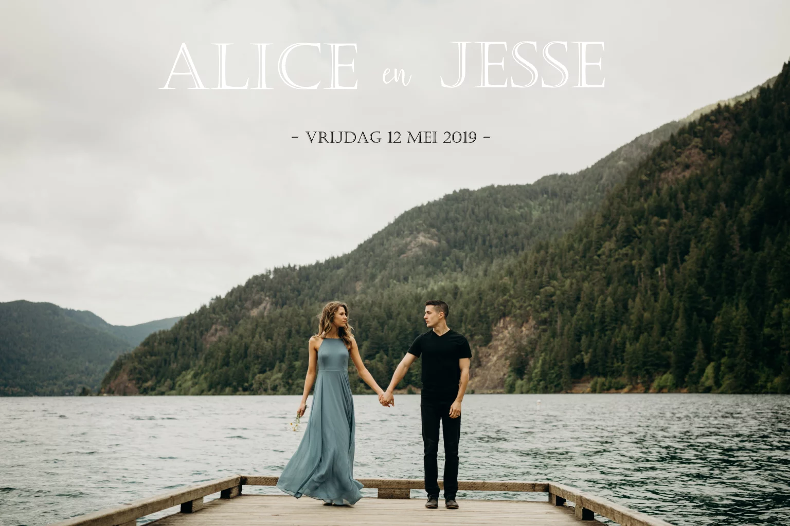 Een mooie eenvoudige trouwkaart met een eigen foto. Heel subtiel maar door de eenvoud heel mooi. Het is echt een mooi kaart te gebruiken voor een bruiloft in de natuur.