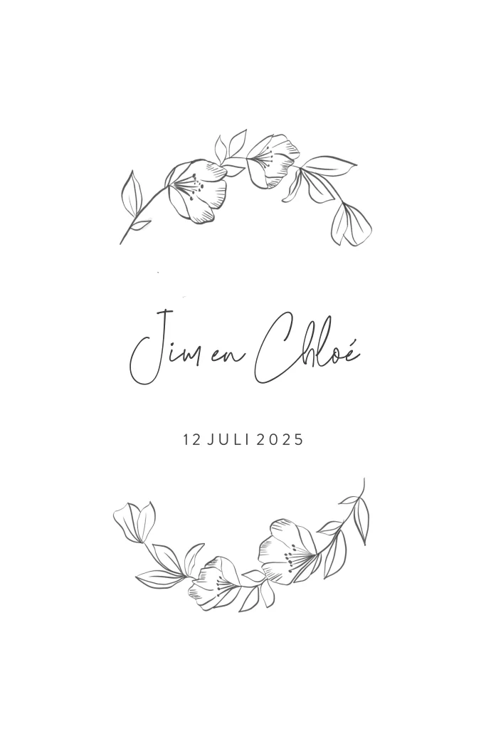 Een mooie minimalistisch trouwkaart met een lijntekening van bloemen. Kleuren kunnen gewijzigd worden.