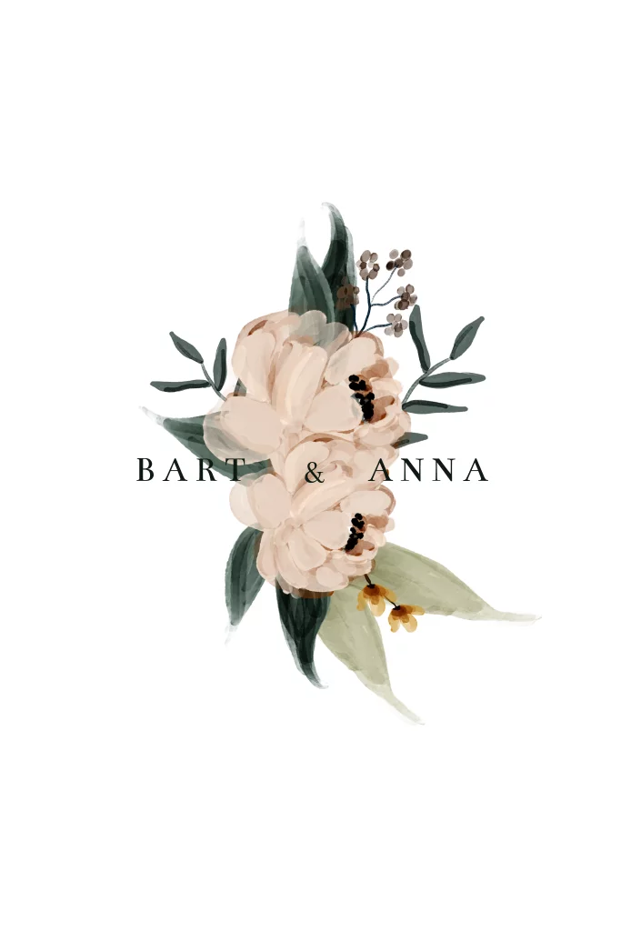 Een mooie eenvoudige Trouwkaart met watercolor rozen en blaadjes. Achtergrond kleur van de kaart kan gewijzigd worden.