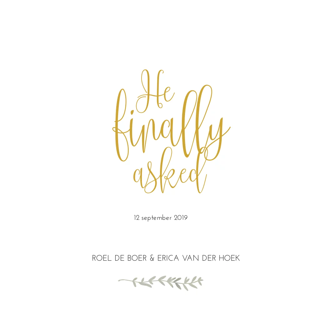 Een mooie eenvoudige verlovingskaart met een grappige handlettering tekst.
