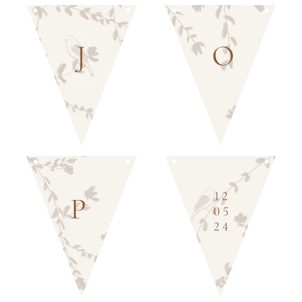 Een leuk en hip geboortekaartje in de vorm van vlaggetjes. Kleuren en teksten kunnen worden aangepast.