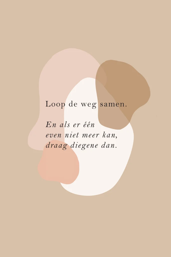 Een mooi kaart met een figuren en de tekst " Loop de weg samen."