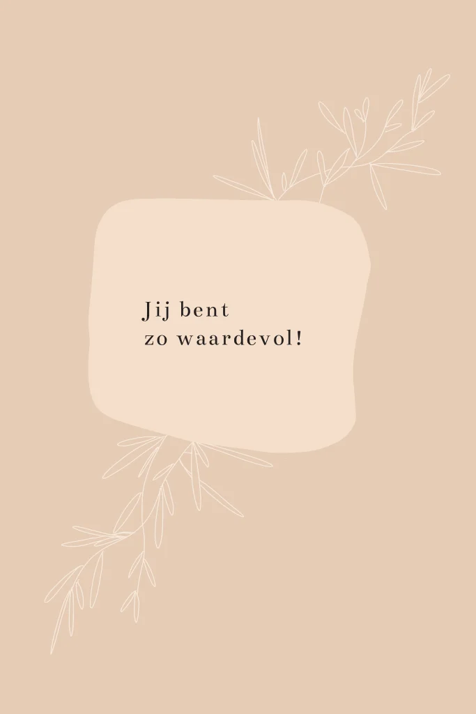 Een mooi kaart met een bloemen en de tekst "Jij bent waardevol"