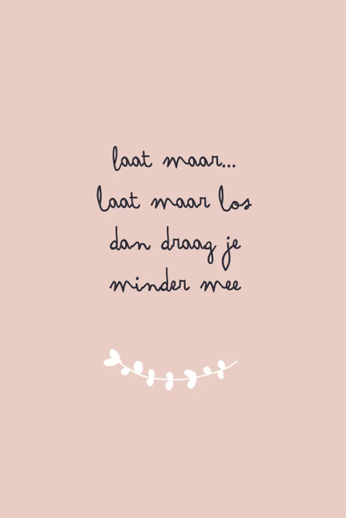 Een wenskaart met een gedichtje van "Mijn". "Laat maar, laat maar los, dan draag je minder mee"