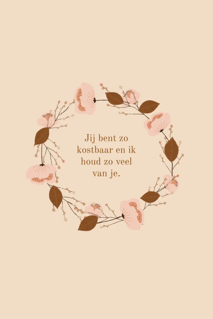 Een mooi kaart met een afbeelding van een krans. De tekst kan je aanpassen.