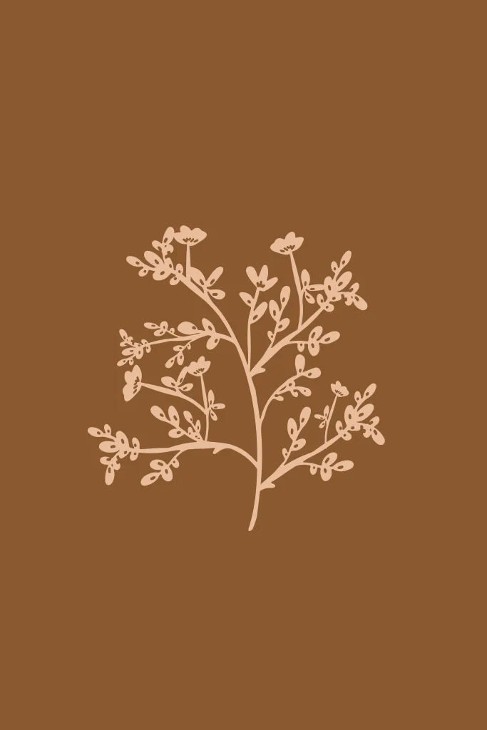 Een kaart met een roze takje en een roest kleurige achtergrond.