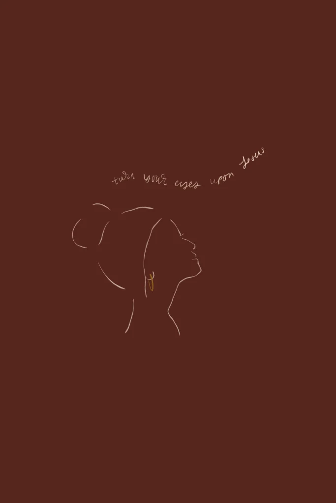 Een mooi kaart met een tekening van een vrouw en de tekst, turn your eyes upon jesus.